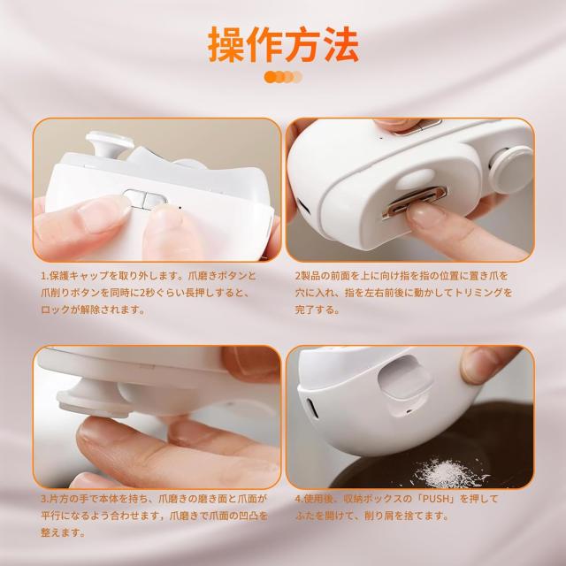この電動爪切りは先進的な電動モーター技術を採用し、高速刃で爪を切ります。