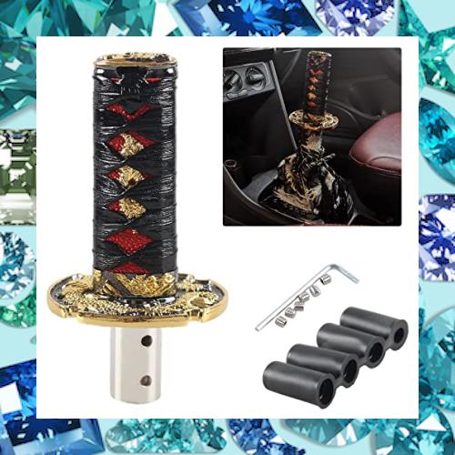 ◆商品名:VEHSUN 汎用 シフトノブ 日本刀 トラック ギアノブ 武士刀 ロング 長さ100mm 5速 6速 汎用 和風 アダプター 4種類付 AT MT 車用 ドレスア