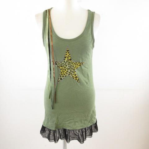 【中古】ユニクロ UNIQLO タンクトップ チュニック プリント カーキ 緑 S *T579 レディース