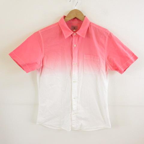【中古】ザショップティーケー THE SHOP TK シャツ 半袖 グラデーション ピンク 白 4 *T588 メンズ