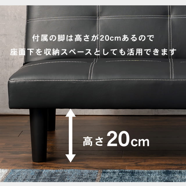 - 脚は高さが20cmもあるので、座面下を収納スペースとしても。
