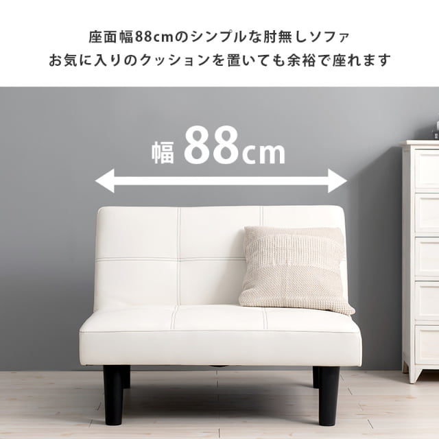 ソファ 幅88cm 1人掛け 3段階リクライニング 連結可能 一人暮らしソファ シンプル 肘無し ゆったり ブラック ホワイト 脚部のみ組立式 代引不可