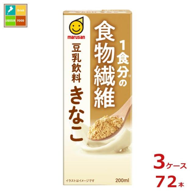 送料無料 マルサン 1食分の食物繊維豆乳飲料 きなこ200ml紙パック×3ケース(全72本)