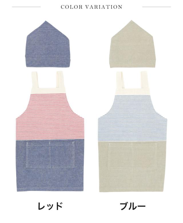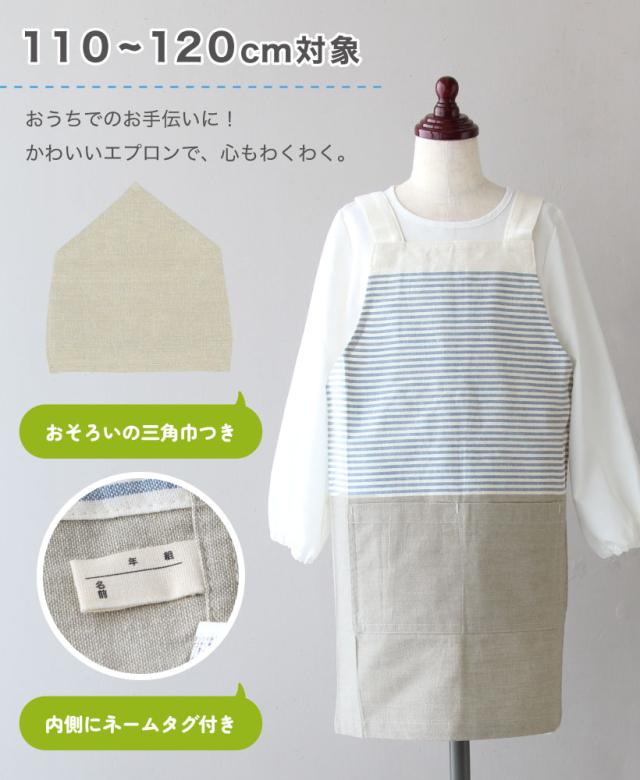【メール便1枚のみ送料無料】マリンスタイル キッズエプロン 三角巾SET 110-120cm 幼稚園 保育園 Mサイズ ボーダー かわいい おしゃれ プレゼント【P】【M】