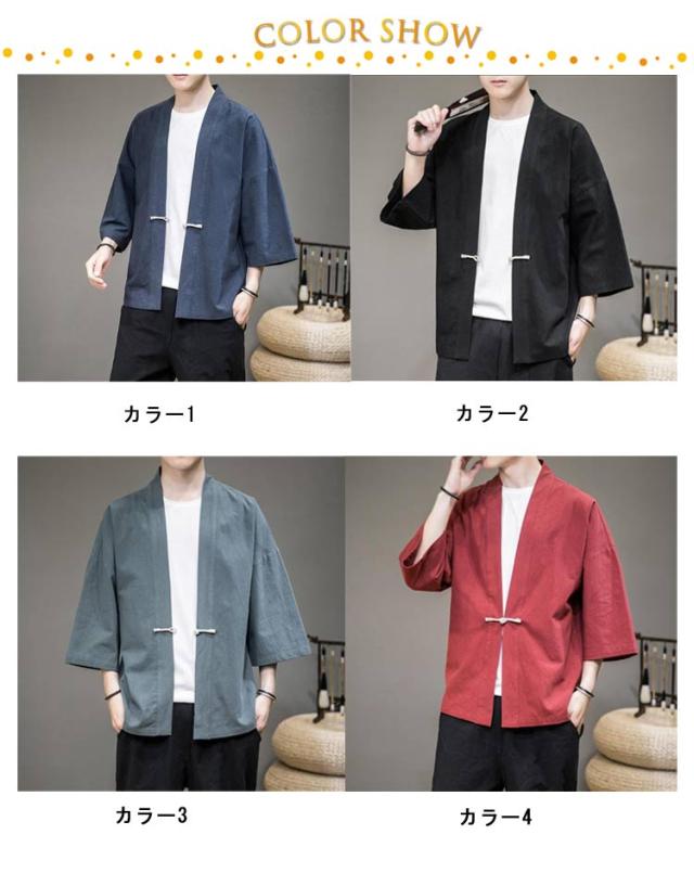 メンズ L 羽織 カーディガン 着物 浴衣 男性 ルームウエア ジャケット 大きいサイズ チャイナ風 普段着 上着 カーディガン 無地 薄手 祭り おしゃれ 着物 ゆったり 花火大会 M チャイナボタン XL 2XL 3XL 4XL