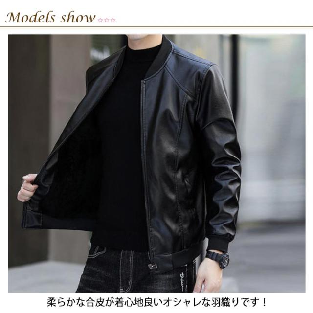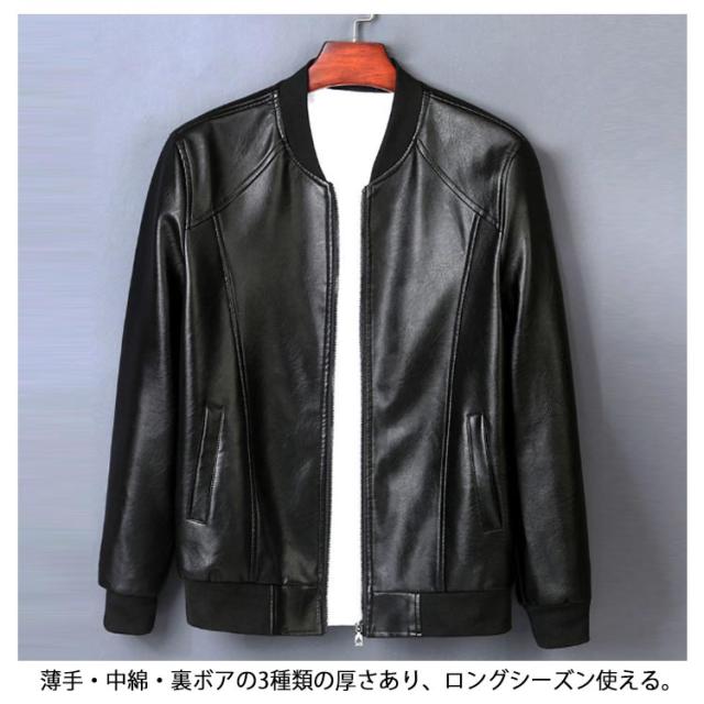 ライダースジャケット リブ襟 シングル レザージャケット アウター 防水 ジャケット かっこいい PUレザー 三つ厚さあり 合皮 防寒 PUレザー 春 秋 冬 細身 30代