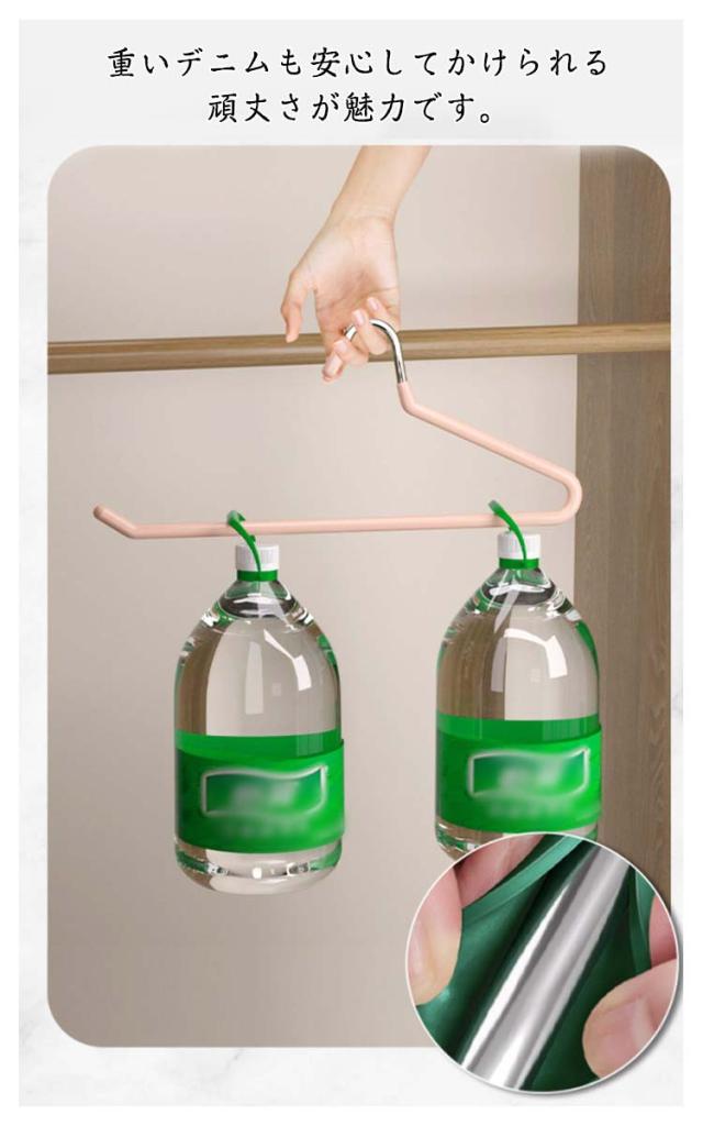 | 選べる2タイプのズボン用ハンガー、同色30本セットです。 重いデニムも安心してかけられる頑丈さが魅力です。 すべり落ちにくい素材がされているので、収納中に落ちてシワになったりしません。 また、取り出しやすさを考えられたデザインなので、ハンガーをクローゼットにかけたままアイテムを取り出せます。 タオルやスカーフなどの物干しにも便利です。 | |