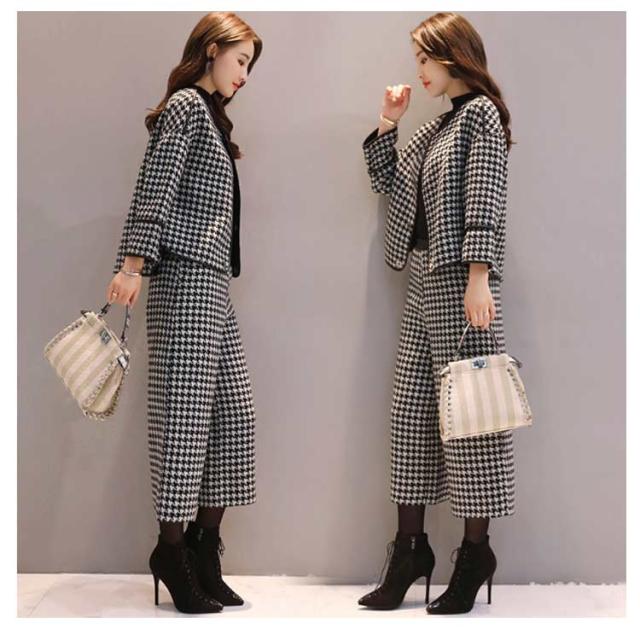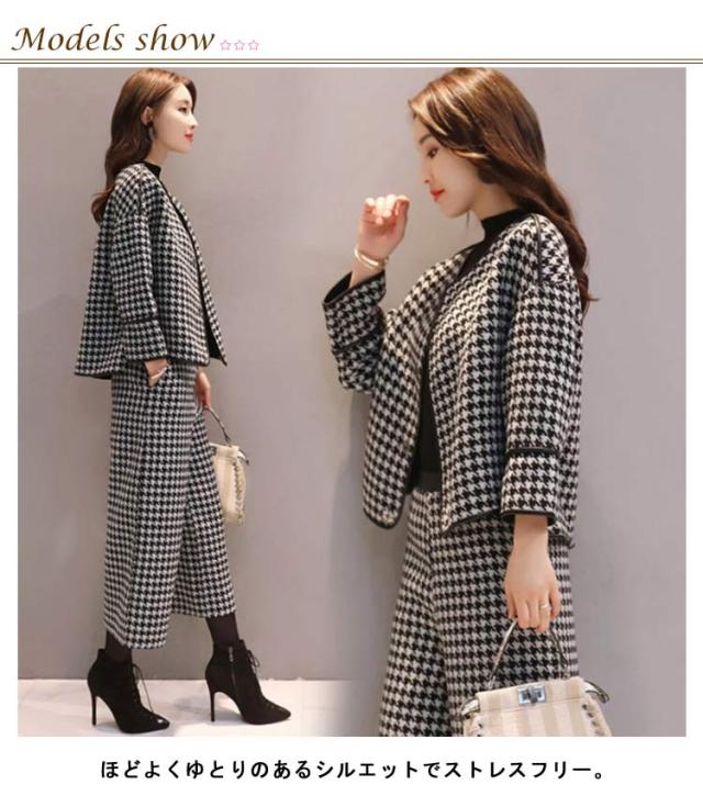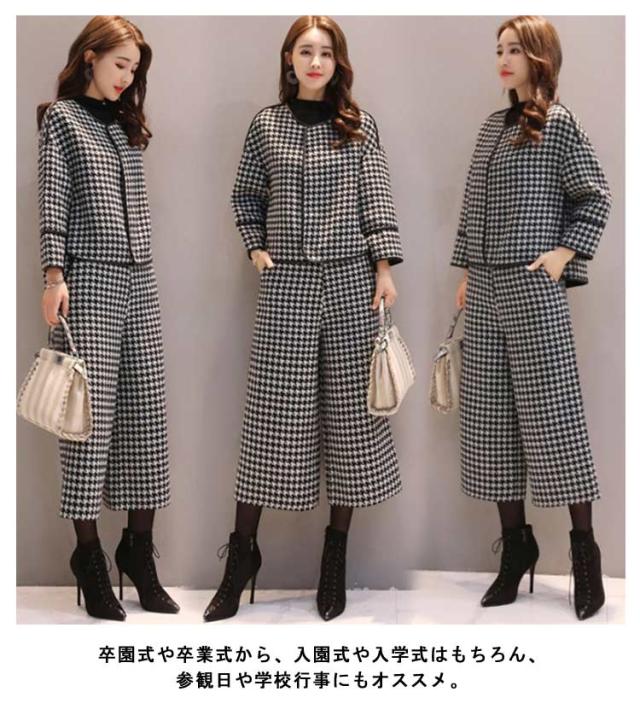 チェック柄 上下セット 2点セット スーツ レディース セットアップ パンツスーツ 卒業式 上下 ジャケット 卒業式 ワイドパンツ 千鳥柄 ゆったり 卒業式 入園式 卒園式 セレモニー