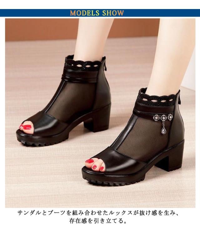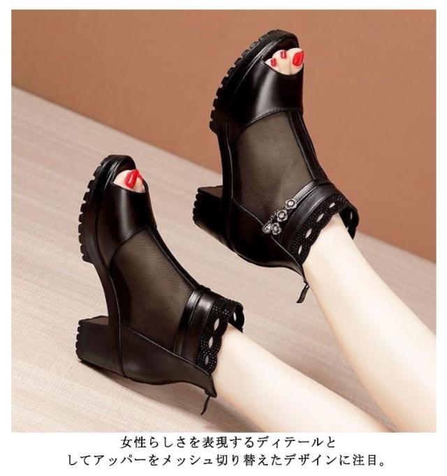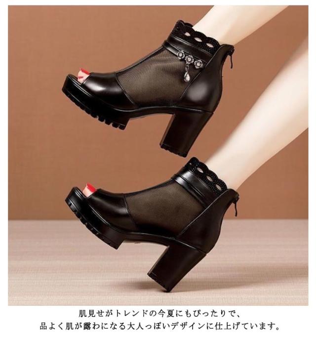 ヒールサンダル サマーブーツ おしゃれ 太ヒール サンダル ブーツサンダル オープントゥ 透け感 ブーツサンダル 美脚 ショートブーツ コンフォート オープントゥ 歩きやすい レディース 厚底 痛くない 歩きやすい 疲れない カジュアル ウェッジサンダル 30代 40代 おしゃれ