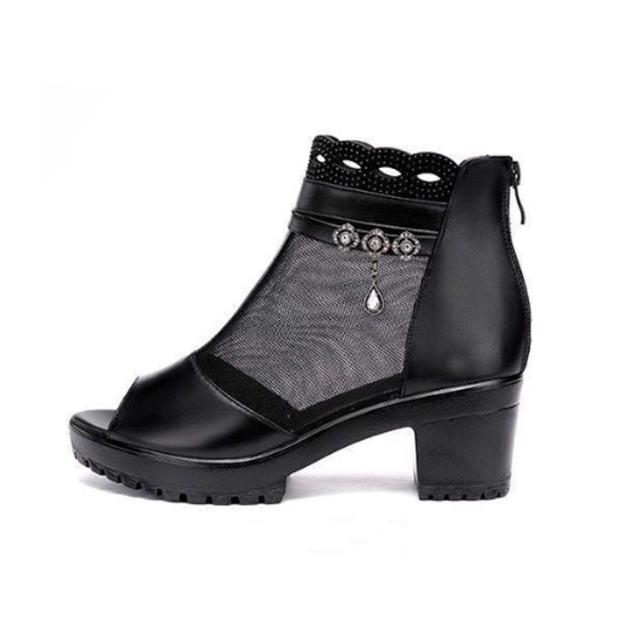 | スタイリッシュでロングシーズン使えるブーツサンダル サンダルとブーツを組み合わせたルックスが抜け感を生み、存在感を引き立てる。 女性らしさを表現するディテールとしてアッパーをメッシュ切り替えたデザインに注目。 肌見せがトレンドの今夏にもぴったりで、品よく肌が露わになる大人っぽいデザインに仕上げています。 | |