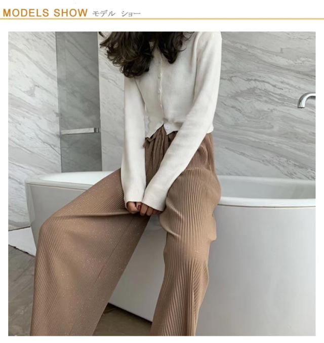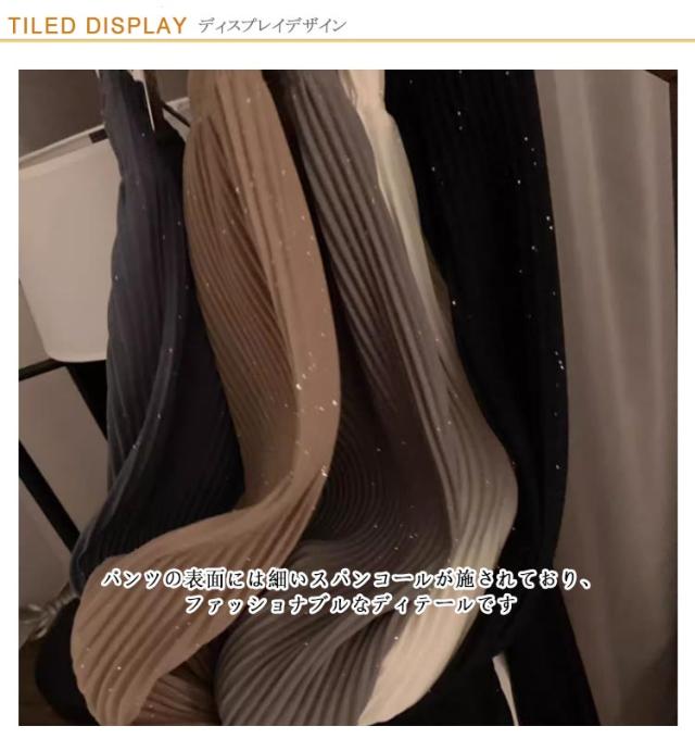 ボトムス プリーツパンツ スパンコール 細かい輝き プリーツワイドパンツ プリーツパンツ レディース パンツ 春夏 プリーツ ワイドパンツ ゆったり 無地 10分丈