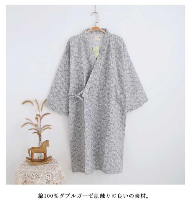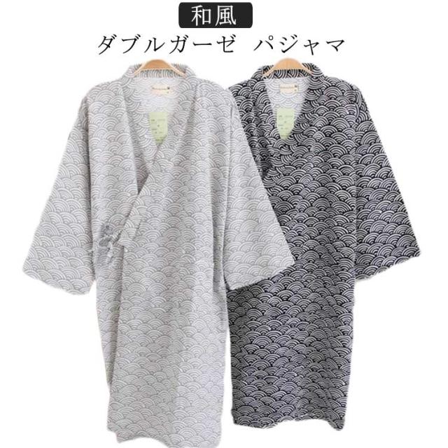 | 和風 ダブルガーゼ パジャマ 綿100%ダブルガーゼ肌触りの良いの素材。 和風着物の設計で調節可能の紐が付いて。 | |
