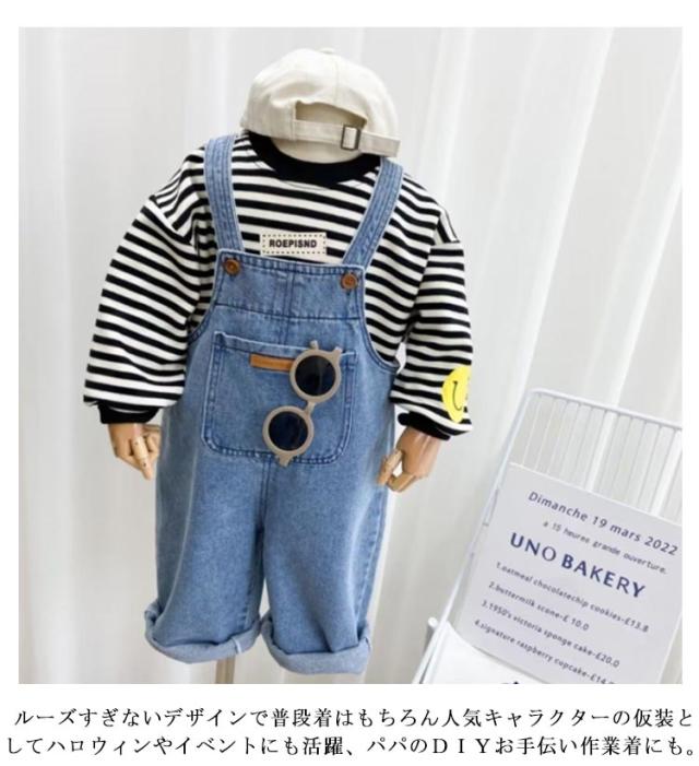 | デニム素材で仕立てたキッズ用オーバーオール 男の子も女の子も少し大きいくらいでロールアップがかわいい。 柔らかいコットン生地なので動き回る子供にもオススメ。 肩紐で調整可能で長く着られ、成長が早いお子様に最適。 ルーズすぎないデザインで普段着はもちろん人気キャラクターの仮装としてハロウィンやイベントにも活躍、パパのDIYお手伝い作業着にも。 一年中使えて一着あれば着回しがいっぱいできます。 出産祝い、誕生日、などのプレゼントにも喜ばれます。 | |