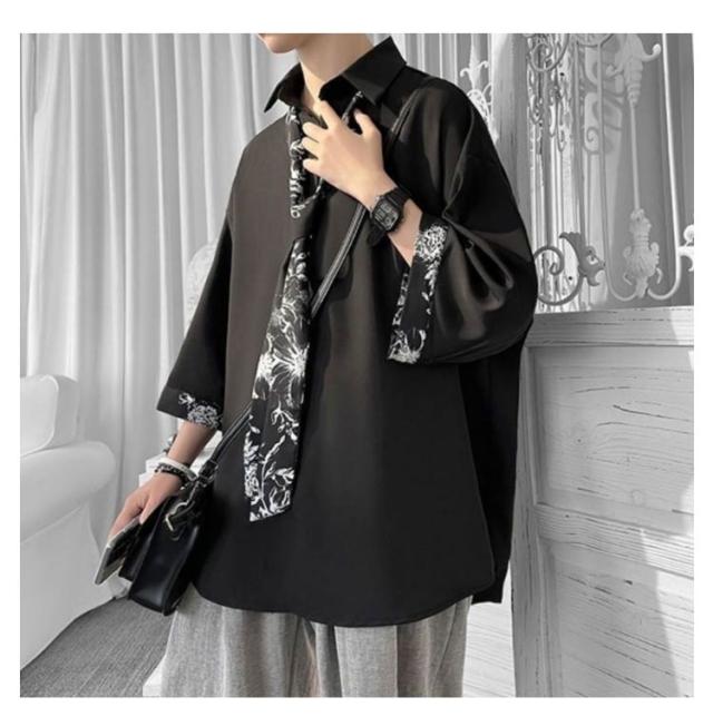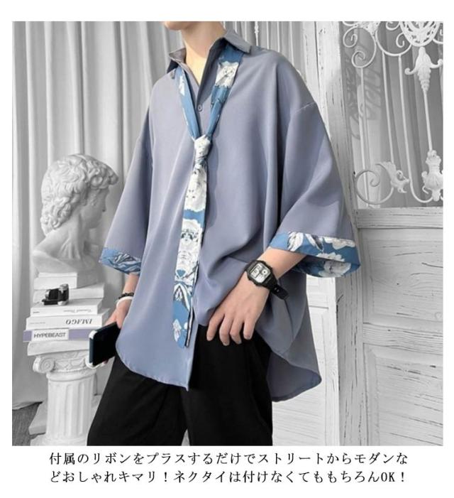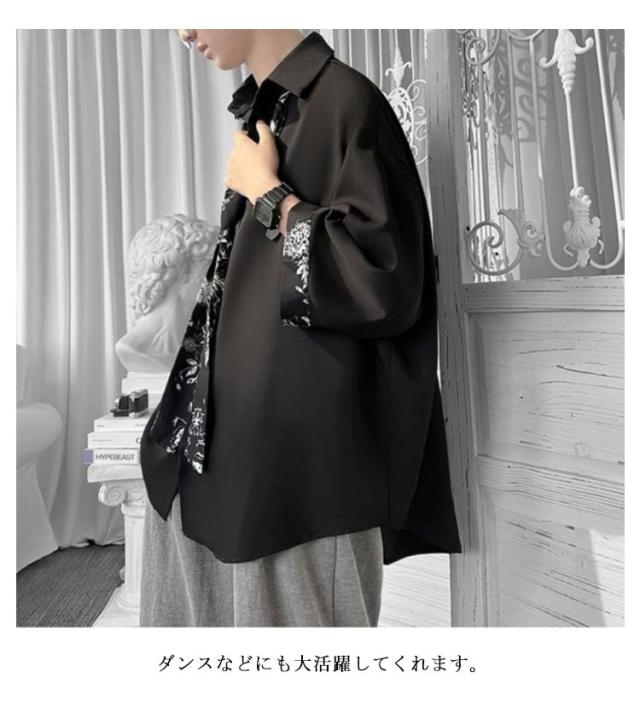 ひんやり メンズ 柄シャツ 原宿系 春 韓国 長袖 韓国ファッション カジュアルシャツ ネクタイ付き シャツ 無地 切り替え 薄手 おしゃれ ストリート カジュアルシャツ 大きいサイズ トップス ダンス衣装 体型カバー