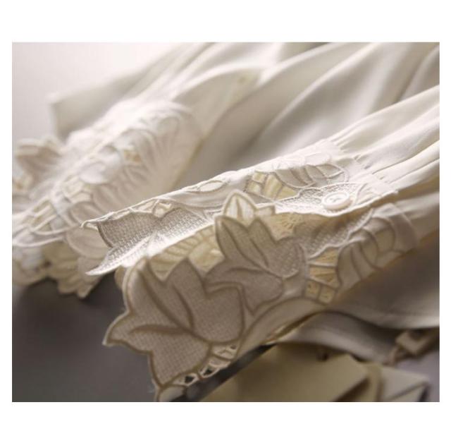 | 1枚着るだけでコーデが華やかに♪ ボリューム感のあるフリルが華やかな長袖ブラウス、ボトムを選ばずスカートやパンツにも合わせられるのでオン・オフ問わずデイリーに使えます。 袖口花柄レースなどディテールにこだわった、女性らしさ漂う1枚になっています。 | |