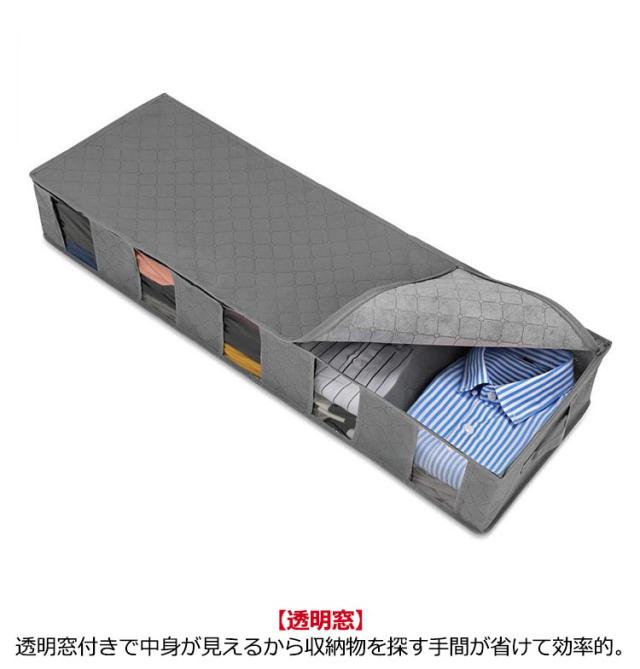 仕切り付き すき間収納 靴 薄型 衣類用 透明窓付き 収納ボックス 不織布 収納ケース ベッド下収納ケース 送料無料 防塵 防カビ 湿気防止 ベッド下収納ケース 通気性 ベッド下 衣装ケース 衣類収納 折り畳み