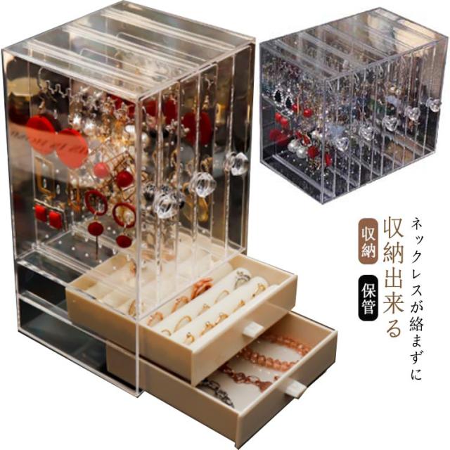 ネックレスケース ネックレス 収納 ケース ネックレススタンド ない 絡ま ジュエリーケー 保管 アクセサリーケース ネックレスケース 黒 透明 おしゃれ 回転式 透明 アクリルケース ジュエリー ピアス イヤリング