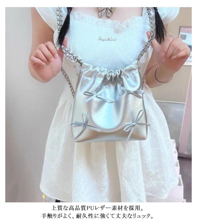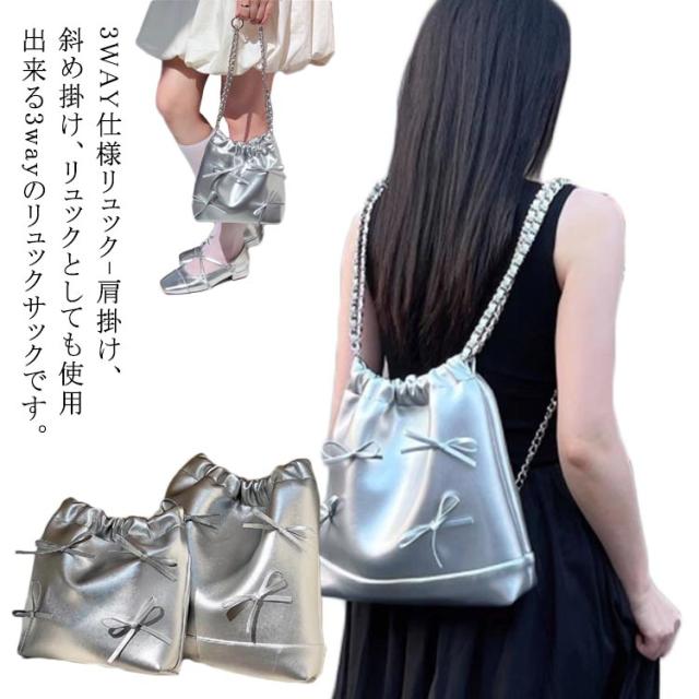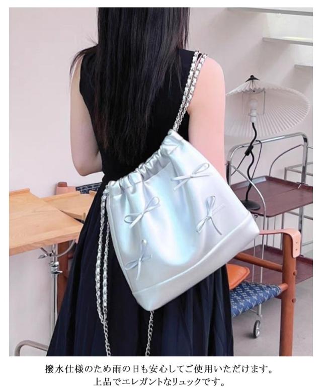 巾着バッグ リュックサック チェーンバッグ 大人可愛い リュック 大きめ 大容量 レディース リュックサック お洒落 PUレザー ミニリュック オフィス カジュアル 肩掛けカバン 通勤