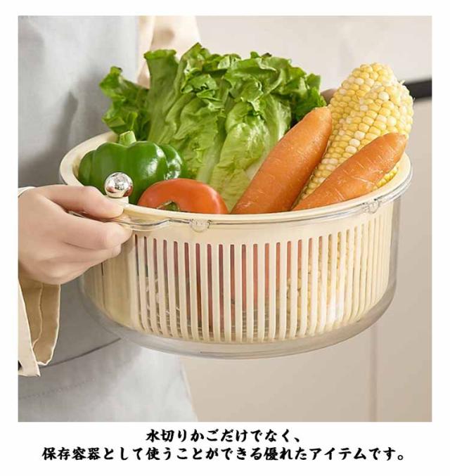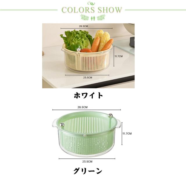 水切りかご 取っ手付き 水切りバスケット 積み重ね可 便利グッズ 水切り器 野菜洗い 360度回転 洗浄容器 キッチン用品 野菜水切り 2重構造 食洗機対応 水切りかご 収納ボックス 調理器具 家庭用 ザル 保存容器 台所 野菜 果物 洗い ボウル ホワイト グリーン