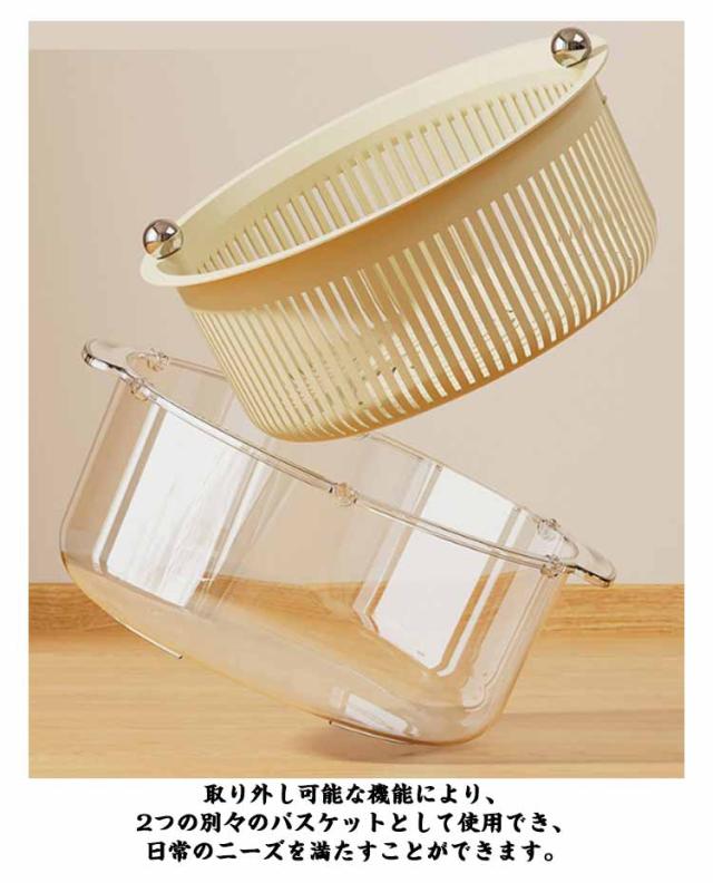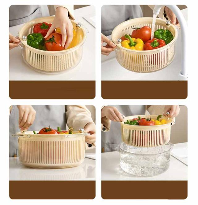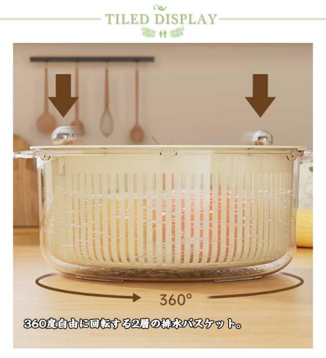 | 洗いたての野菜を素早く水切り!簡単に使える水切りかご。 360度自由に回転する2層の排水バスケット。 取り外し可能な機能により、2つの別々のバスケットとして使用でき、日常のニーズを満たすことができます。 水切りかごだけでなく、保存容器として使うことができる優れたアイテムです。 | |