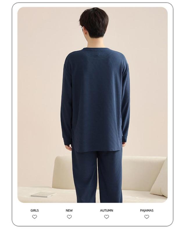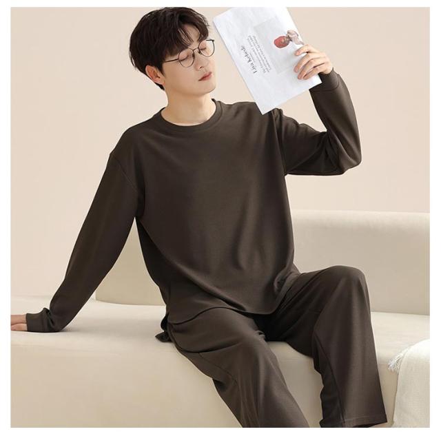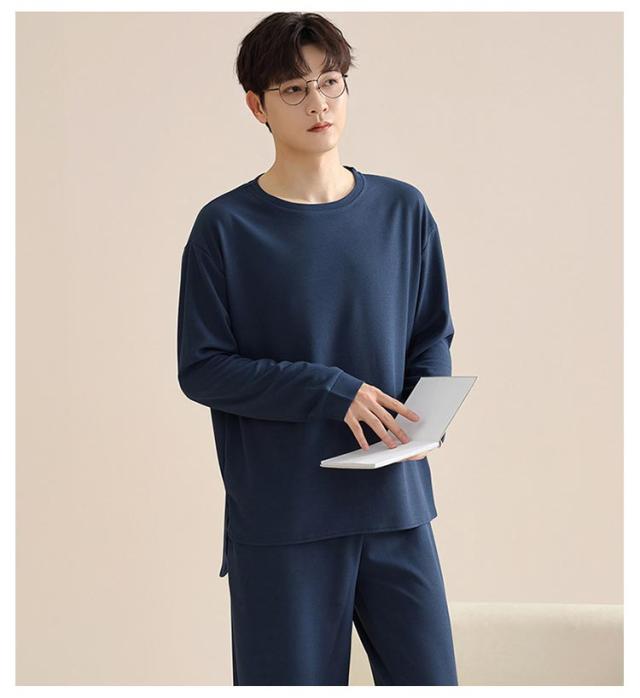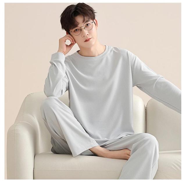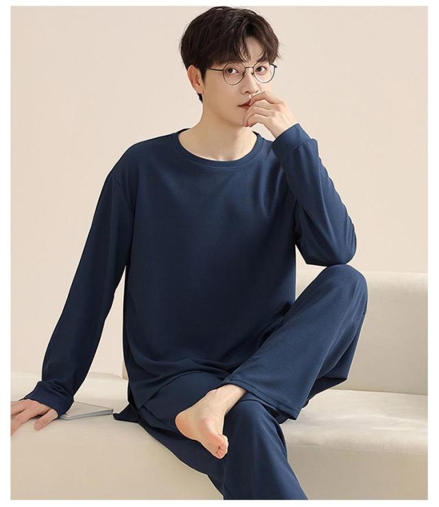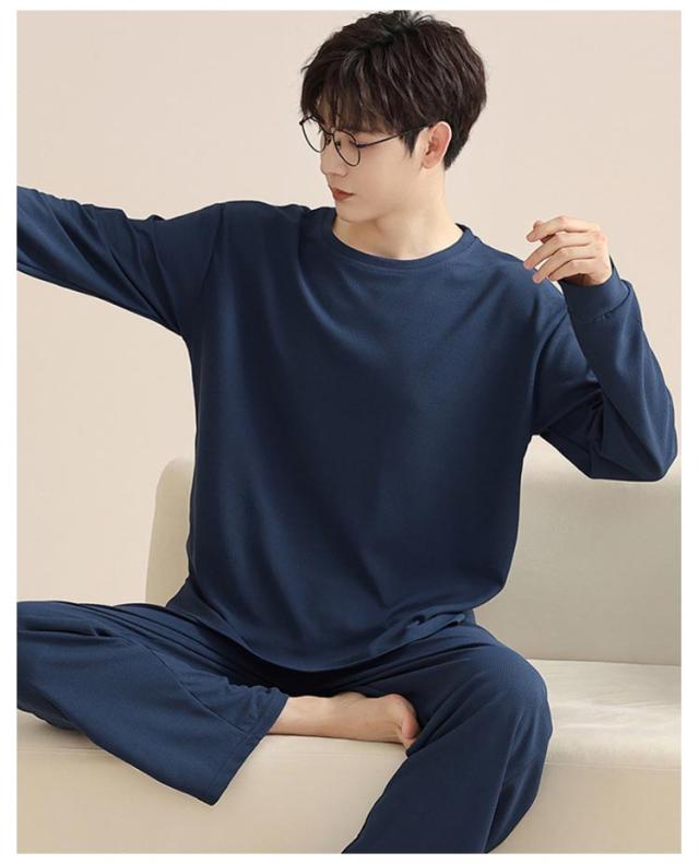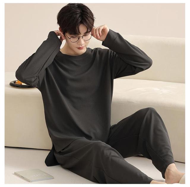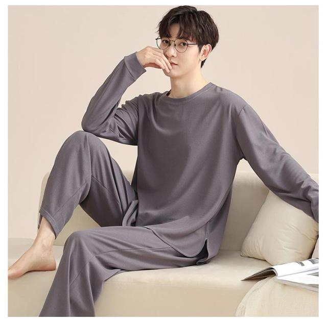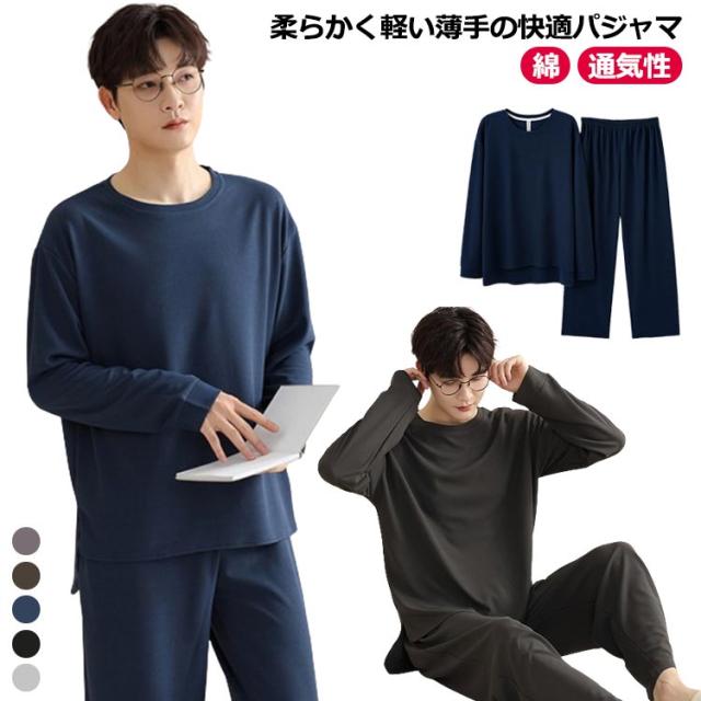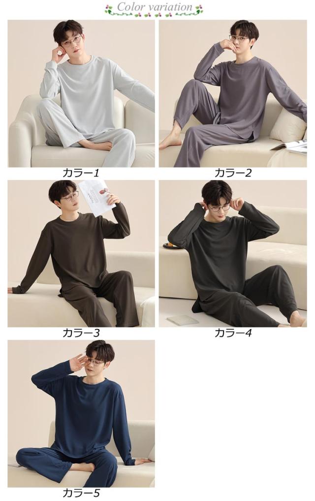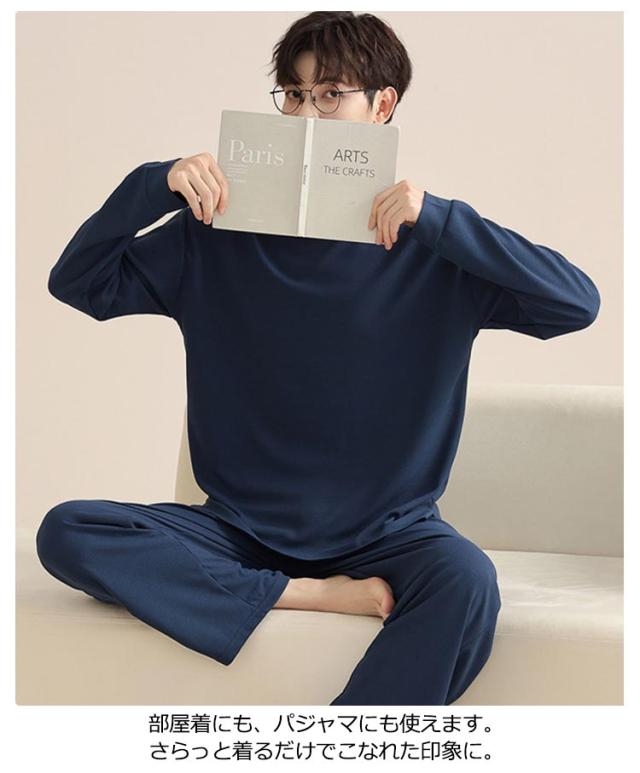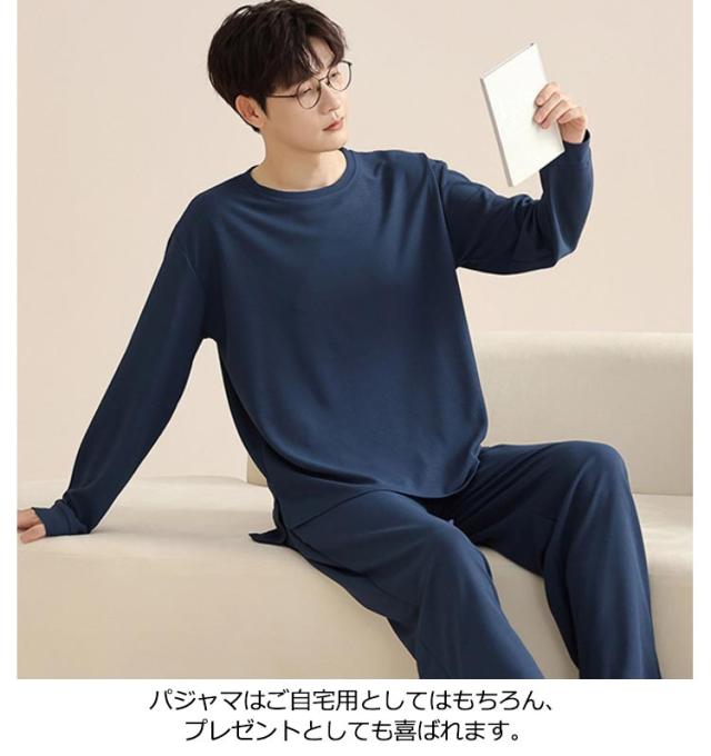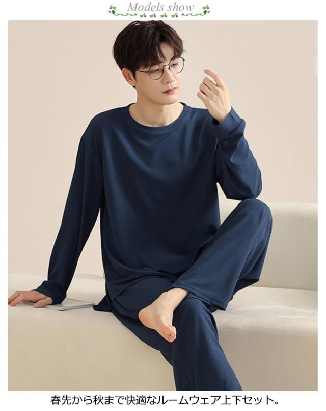 長ズボン メンズ シンプル 通気性 長袖 おしゃれ 春 秋 パジャマ 寝間着 寝巻き 上下セット 部屋着 ナイトウェア ウエストゴム ルームウェア ルームウェア クルーネック カジュアル 薄手 セットアップ 無地 大人 紳士 大きいサイズ 父の日