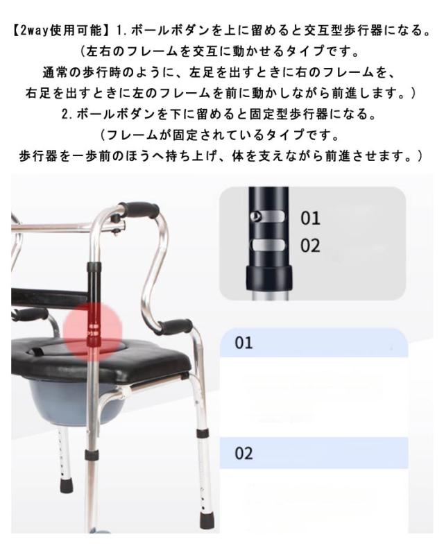| 室内での歩行、立ち上がりをサポートする多機能歩行器。【交互型&固定型2way】【ワンタッチ折りたたみ式】 高さ最大8段階調節可能:身長・体勢に合わせて8段階まで調節が可能。ロックでしっかり固定できるから体重をかけても安心。 L字型フレーム:持ち方の幅が広がるL字型フレーム 軽量・丈夫なアルミ製(2.5kg):一人でも簡単に持ち運びができ、扱いやすい。 滑りにくいグリップ:グリップ部は独自の形状で滑りにくく、しっかり握れる軟質素材を使用。 丈夫な12mmパイプ:丈夫な12mmの太パイプを使用しています。 折畳み収納&組立簡単:上部にあり折畳みロックを押しただけで、簡単に折畳みすることが可能。また組立は道具不要、折り畳んだフレーム広げるだけで完成。 たとえばこんな方におすすめです。つたい歩きに不安を感じる方、両手でステッキを使用している方、脚のリハビリをしたい方 | |