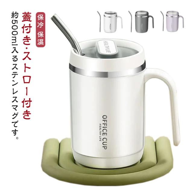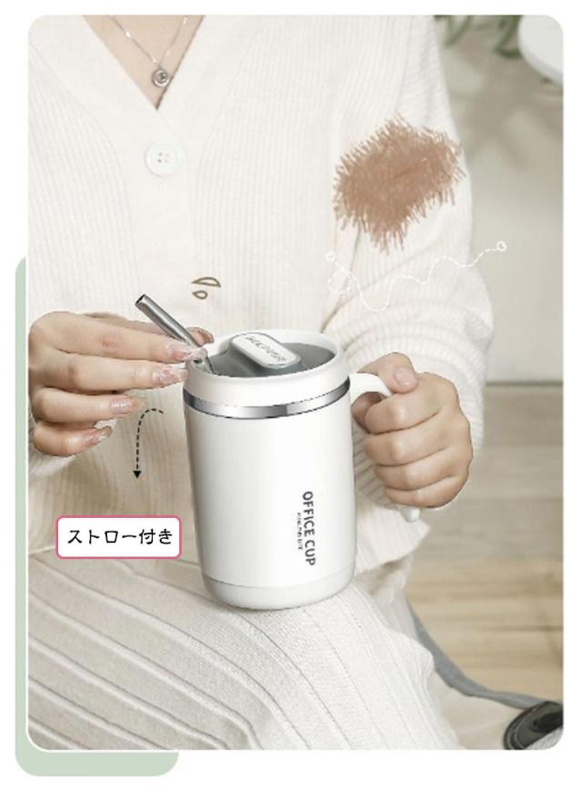 マグカップ ステンレス コーヒーマグ ストロー付き 蓋つき お茶 持ち手 取っ手 タンブラー 保冷 保温 ステンレスマグ 二重構造 ステンレスマグ 真空断熱 持ち運び 大容量 コーヒー こぼれにくい 紅茶 キャンプ オフィス アウトドア おしゃれ かわいい