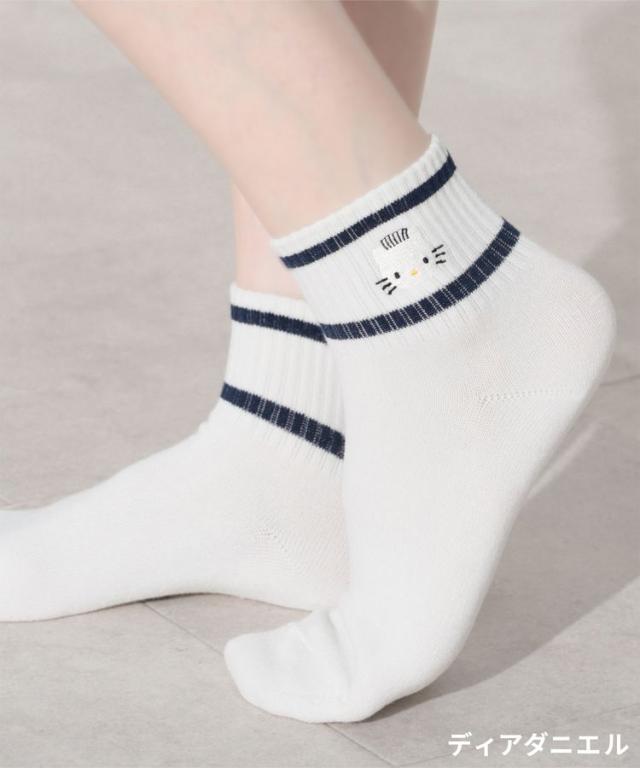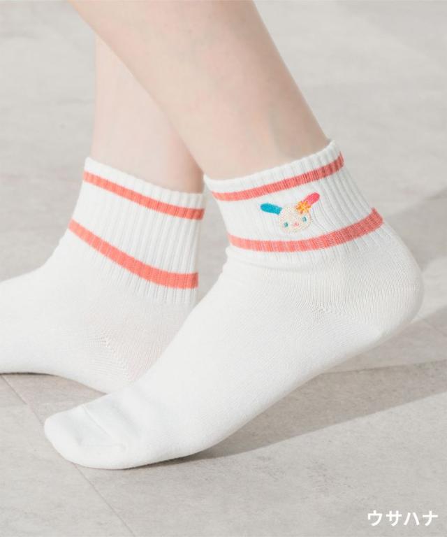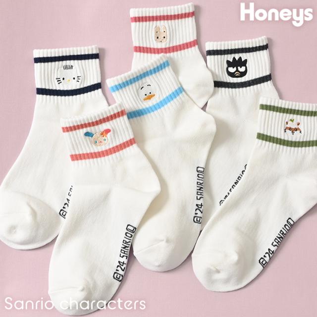 靴下 ソックス 刺繍 ワンポイント レディース 春 夏 秋 冬 レディース Honeys ハニーズ サンリオキャラクターズ/ラインソックス