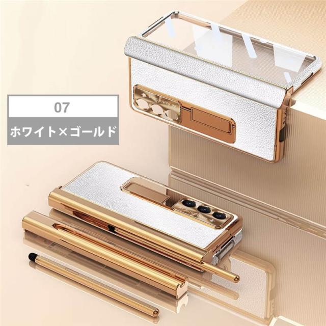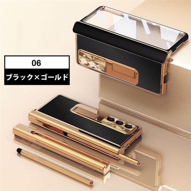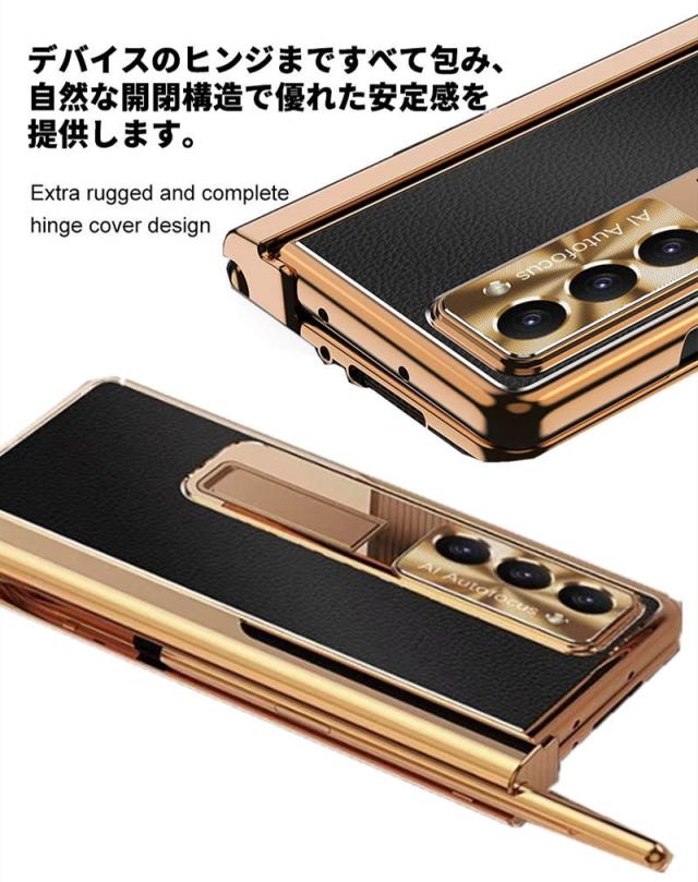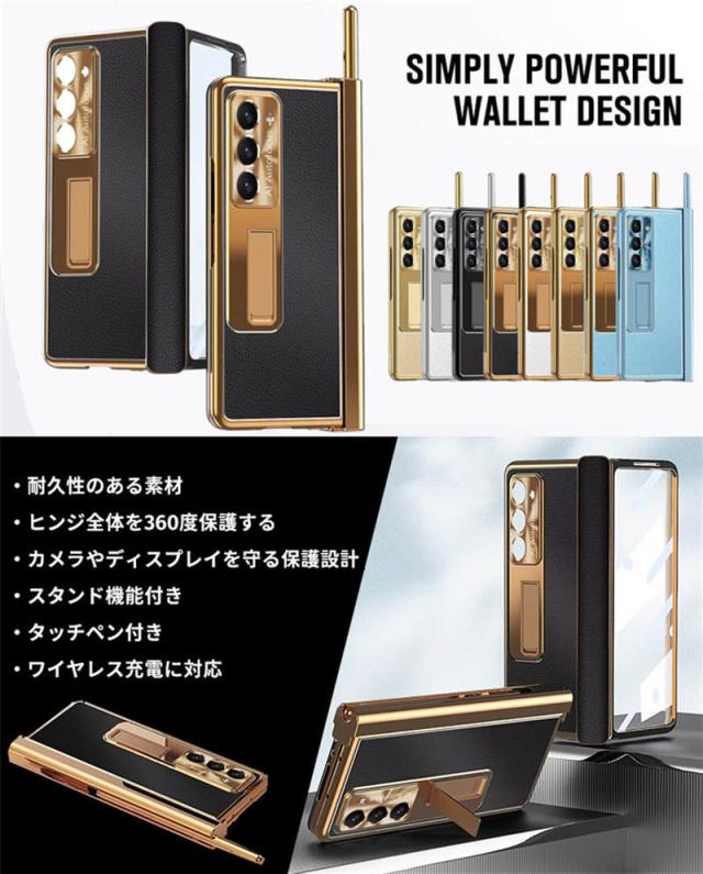 Galaxy Z Fold 6 ケース Galaxy Z Fold 7 ケース Galaxy Z Fold 4 ケース カバー タッチペン付き 耐衝撃 スタンド 画面保護 フィルム ヒンジ保護 革製 高級感 Galaxy Z Fold5 カバー Galaxy Z Fold 3 ケースおしゃれ メッキ加工