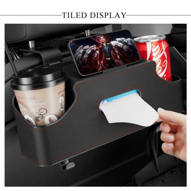 車用 ティッシュホルダー シートバックポケット 小物入れ ティッシュケース ドリンクポケット ティッシュボックス PUレザー 収納バッグ 車内収納袋 シートバックポケット ドリンクカップホルダー 省スペース 水筒 ボトル収納 防水防汚 耐摩耗 後部座席 吊り下げ 車用品