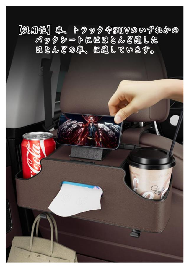 | 【多機能収納】多機能パーティションストレージ、整理に便利、アイテムタイプの相互影響を回避します。ティッシュ、飲み物、携帯、傘、コップ、化粧品、、眼鏡などをまとめて収納することができます。 【高品質素材】傷つきにくく、汚れにくい高品質PUレザーを採用しており、防水性も耐久性も備えており、擦り傷、汚れなどの心配は必要なく、快適に使用することができます。車に取り付けると、車の全体的なスタイルを向上させることができます。 【汎用性】車、トラックやSUVのいずれかのバックシートにはほとんど適したほとんどの車、に適しています。省スペース、あなたの車の整頓と便利を維持します。 【車内空間節約】収納能力抜群、車の中に散らした小物をまとめて楽に収納できる。シートバックに取り付ければ、車内を綺麗になり、実用性は心配無用。 【取り付け簡単】取付には一切工具も必要なく、フックをヘッドレストに通すだけの簡単装着できる。多くのタイプの車にも使用ができる。 注意:以下の用途に適しています。取り外し可能なモバイルシートの後部座席のヘッドレスト。 一体型の固定シートのヘッドレストには適していません。取り付けた後運転席側には何も違和感なく、外観に影響を与えません。 | |