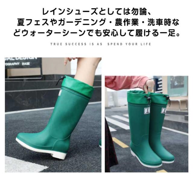 長靴 長靴 田植え ロング丈 軽量 レインブーツ レディース 雨靴 滑りにくい ゴムひも付き おしゃれ レインシューズ かわいい 冬雪 大雨 園芸 完全防水 農作業 釣り 野外 ガーデニング キャンプ アウトドア フェス 春 夏