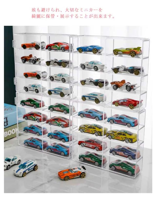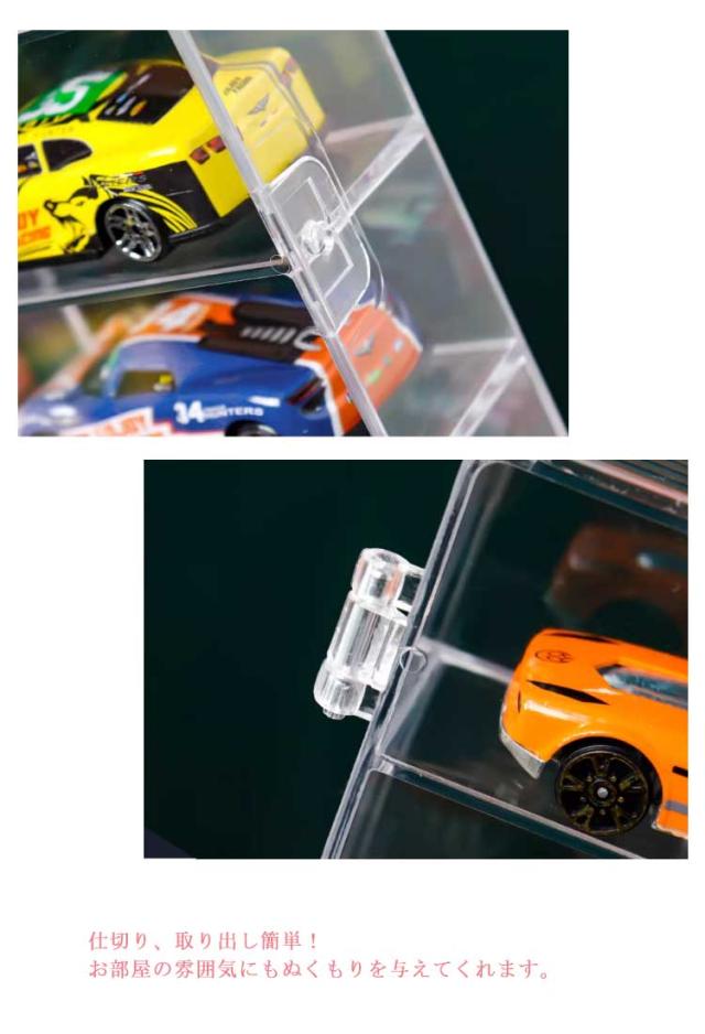 | ミニカーを収納できるクリアコレクションケースです。 仕切り、取り出し簡単! 埃も避けられ、大切なミニカーを綺麗に保管・展示することが出来ます。 お部屋の雰囲気にもぬくもりを与えてくれます。 小さなお子様やコレクターの皆様に喜ばれる製品ですので、贈り物としてもおすすめ致します。 | |