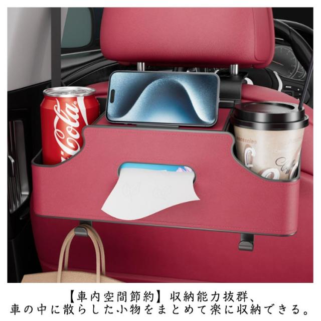 車用 ティッシュホルダー シートバックポケット 小物入れ ティッシュケース ドリンクポケット ティッシュボックス PUレザー 収納バッグ 車内収納袋 シートバックポケット ドリンクカップホルダー 省スペース 水筒 ボトル収納 防水防汚 耐摩耗 後部座席 吊り下げ 車用品