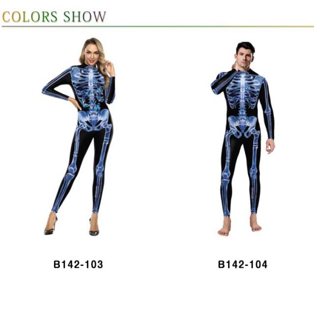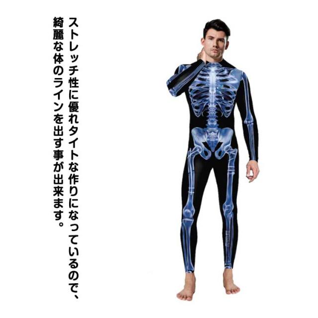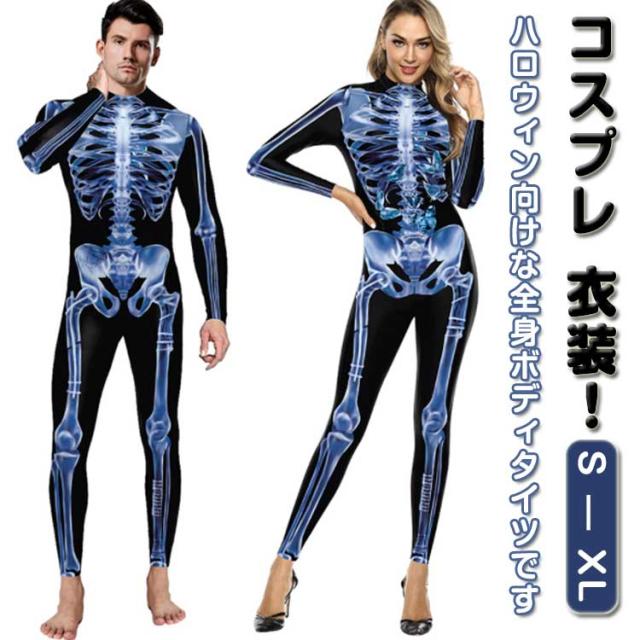 コスプレ コスプレ 可愛い 全身 タイツ ガイコツ ハロウィン お化け 衣装 全身 プリント セクシー お揃い キャットスーツ 仮装 コスチューム 骸骨 3D 大きいサイズ 大人 レディース メンズ ユニセックス ハロウィン 吸血鬼 コスプレ衣装 変装