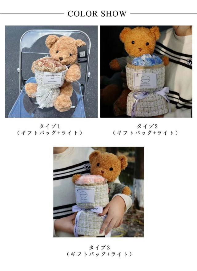 ソープフラワー ブーケ 記念日 熊 ソープフラワー クリスマスギフト クマ 花 ソープフラワーギフト 誕生日プレゼント 花束 くま 花束 バラ 発表会 誕生日 結婚祝い 造花 母の日 退職祝い ギフト バレンタインデー LEDライト付き