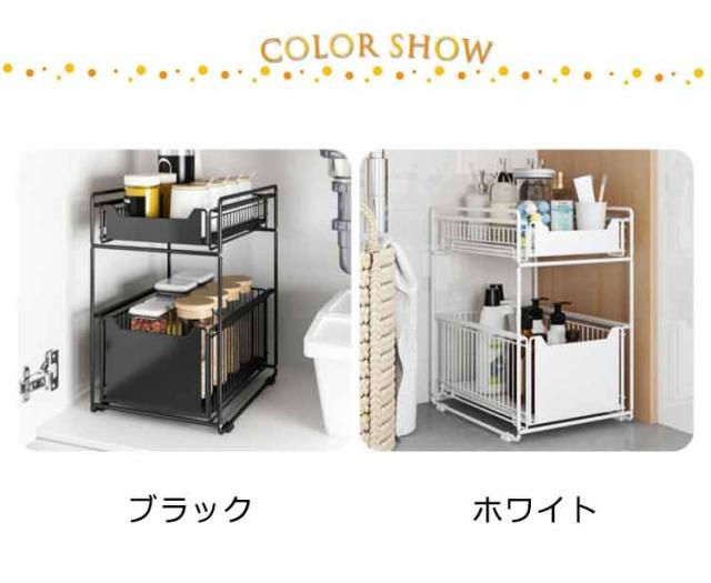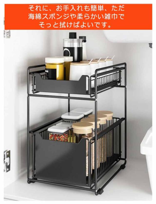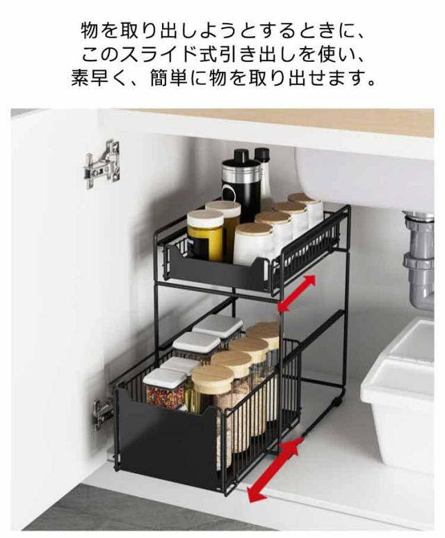 収納 収納 2段 スライド 引き出し スライド シンク下収納 シンク下 シンク下収納バスケット 調味料 キッチン用品 収納 洗面台 収納棚 ラック キッチンラック 収納ラック 整理棚 引き出しタイプ ブラック ホワイト