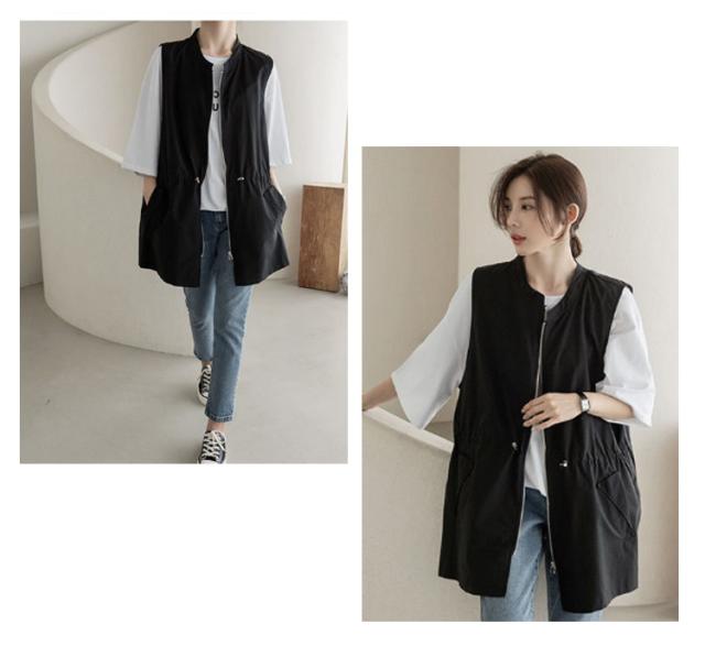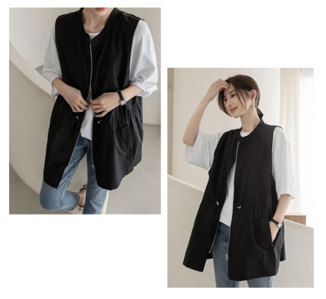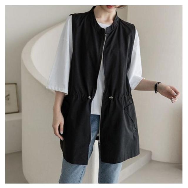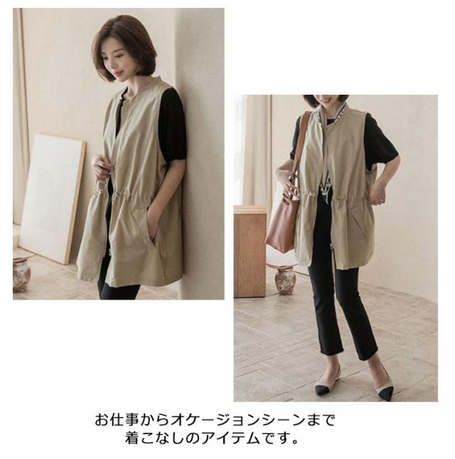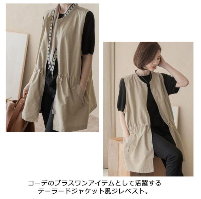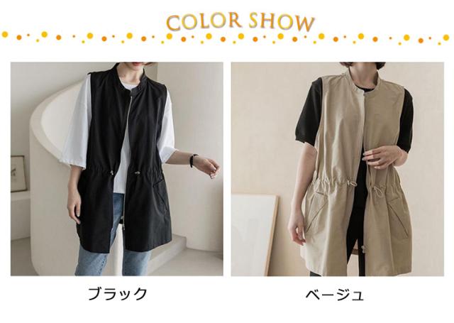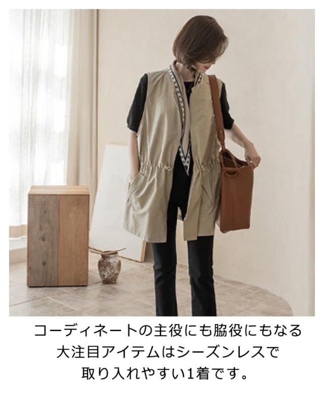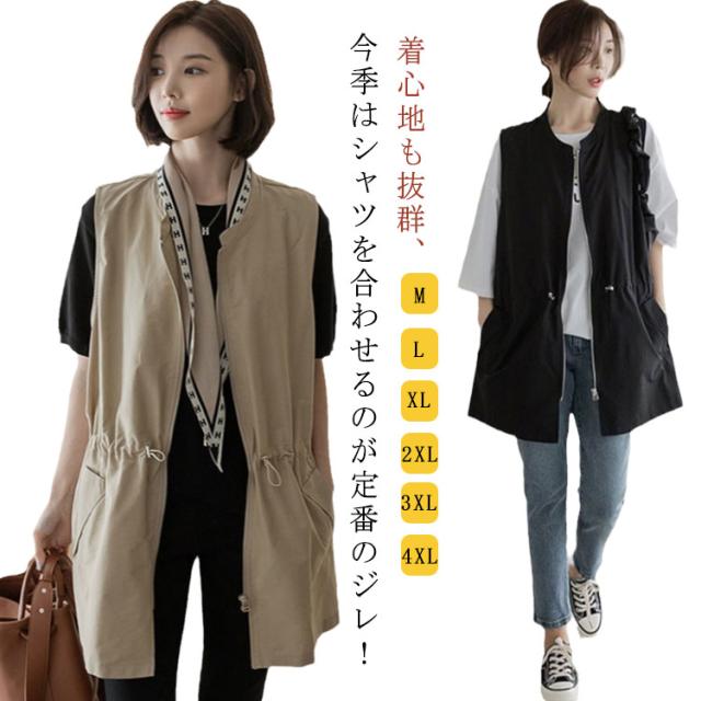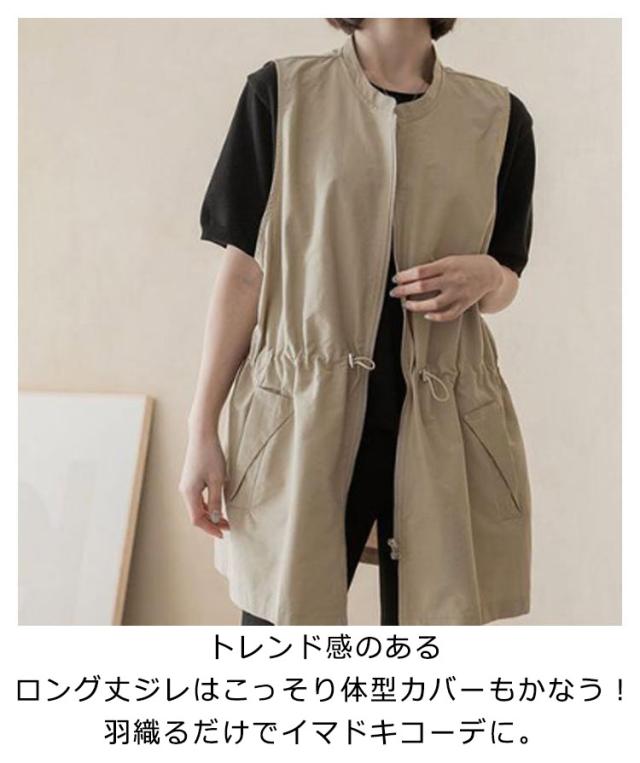 ノースリーブ レディース ジレ 裏地付き ドロスト ベスト 夏 ロング丈 ベスト ブラック ウエスト レイヤード カジュアルベスト 重ね着 春 おしゃれ L ゆったり 羽織り ベージュ M 秋 XL 2XL 3XL