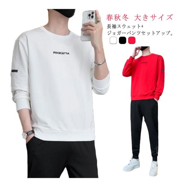 上下セット スウェットパンツ ラウンドネック トレーナー 長袖トレーナー 運動服 ジャージ トレーナー ジョガーパンツ セットアップ メンズ 長ズボン カジュアル 部屋着 ルームウエア 春 秋 冬