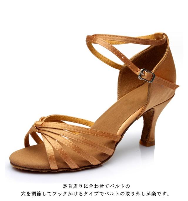 | 5cm/7cmヒールが選べる!社交ダンスシューズ・ラテン用のダンスシューズ 軽いはき心地であらゆるダンスに踊るテンションが上がる。 柔らかくて通気性がよい高品質素材を使用しております。 足首周りに合わせてベルトの穴を調節してフックかけるタイプでベルトの取り外しが楽です。 ストラップは美しさと安定感があります。 柔らかく履きやすい。 安定感のあるヒール付のダンスシューズステージ用に最適! | |