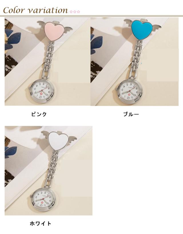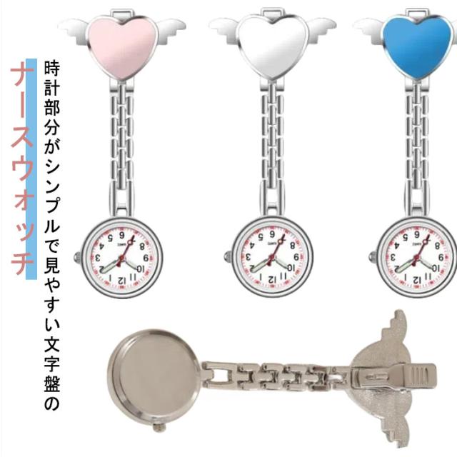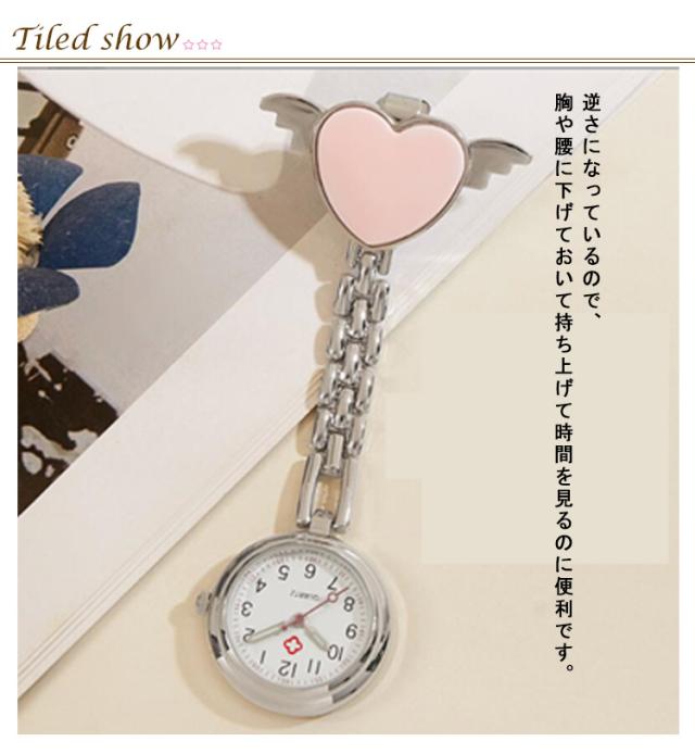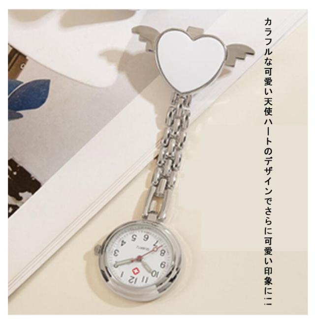 時計 天使ハート ポケットウォッチ ナースウォッチ 夜光効果 クリップ式 逆さ文字盤 かわいい 懐中時計 レディース ナース用 学生用 ウォッチ 軽量 おしゃれ