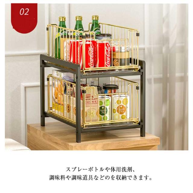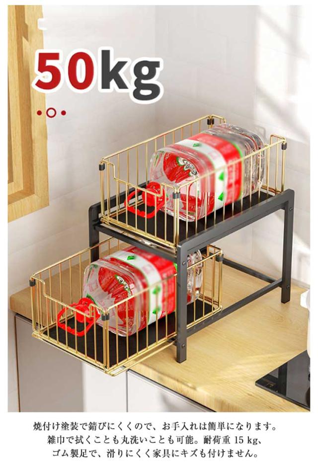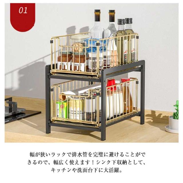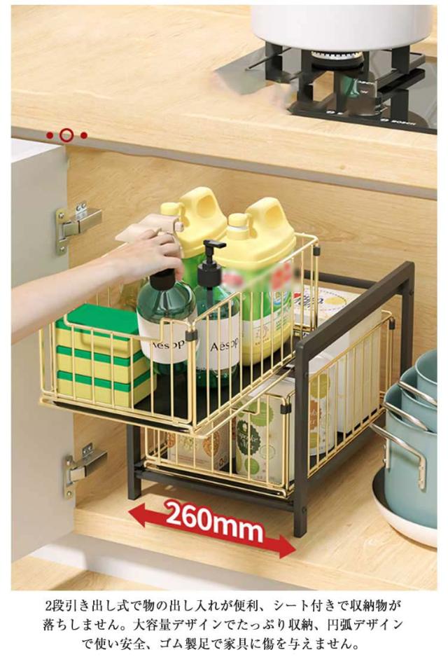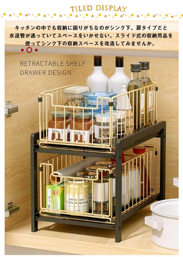スライド キッチン収納 シンク下収納ラック 調味料ラック シンク下収納ラック キッチン収納ラック 大容量2段式 シンク下収納 スライドラック 2段 引き出し付き 大容量 洗面所収納 スリム