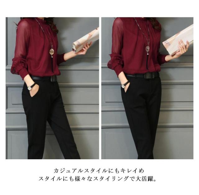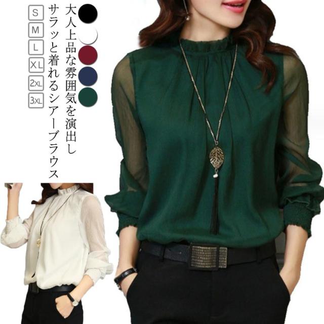 オフィス シアーブラウス シフォン カジュアル とろみシャツ ハイネック 透け感 春秋 ブラウス 春服 シャツ トップス レディース 長袖 上品 きれいめ シアーシャツ シアートップス ゆったり 無地 春 夏 大きいサイズ 大人女性 通勤 ギフト