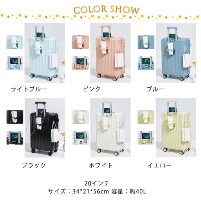 キャリーバッグ スーツケース キャリーケース 6色 Sサイズ 機内持ち込み トランク 泊まる ドリンクホルダー 2-3日用 USBポート付き 大容量 多収納ポケット 軽量 トラベル 多機能スーツケース 360度 回転 安全ロック 修学 海外 国内旅行