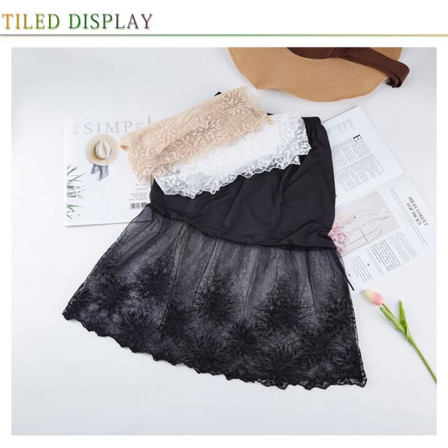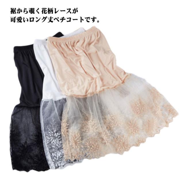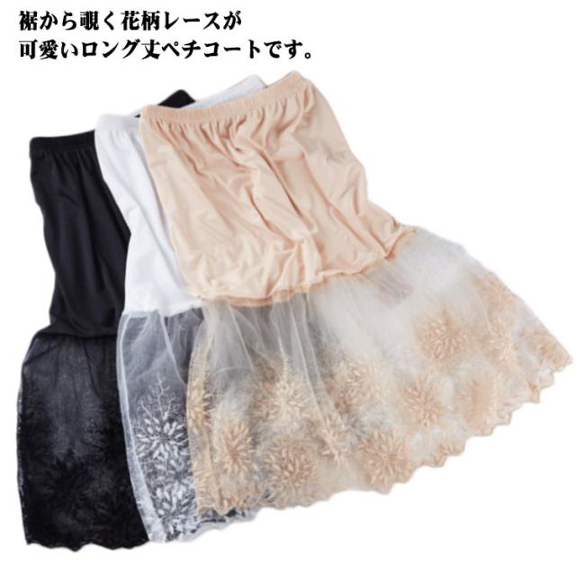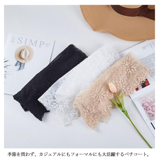 刺繍 スカート ミモレ丈 レースペチコート インナー 裾ふんわり ペチコート スカート チュール 膝下丈 ペチコート ロングスカート ウエストゴム ドレスインナー チラ見せ 下着 フェミニン オシャレ 大人可愛い