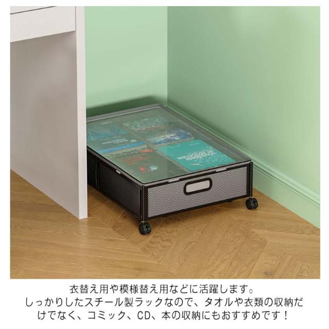 ベッド下収納ボックス 大容量 収納ケース 隙間収納 ベッド下収納 ベッド下収納 衣類 衣類収納 本 折りたたみ 布製カバー付き ベッド下ワゴン ふた付き キャスター付き ベッド下 衣装ケース スチール製 収納ラック スチール製 丈夫 コミック収納 漫画収納 省スペース