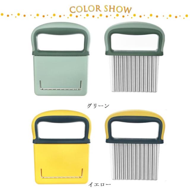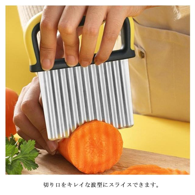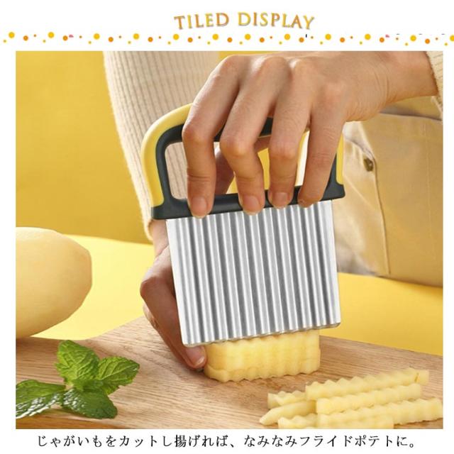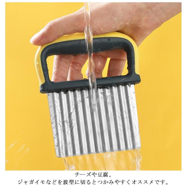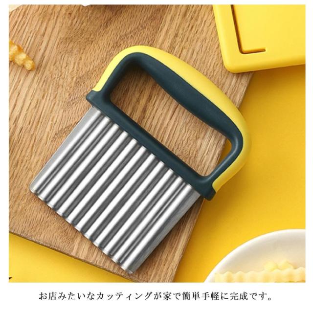 | じゃがいもをカットし揚げれば、なみなみフライドポテトに。 お店みたいなカッティングが家で簡単手軽に完成です。 切り口をキレイな波型にスライスできます。 チーズや豆腐、ジャガイモなどを波型に切るとつかみやすくオススメです。 | |