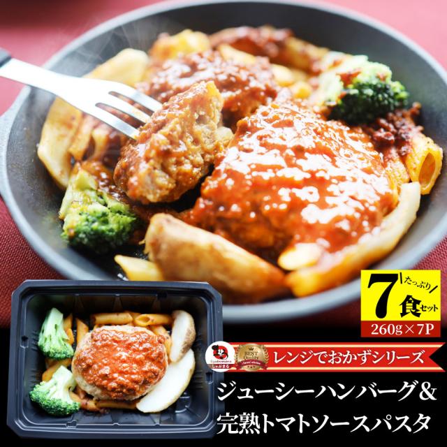 レンジでおかず ハンバーグ 260g×7食セット ジューシー トマトソース パスタ 肉 鶏肉 ギフト プレゼント 食品 温めるだけ レンジ 冷凍 惣菜 ※当日発送対象 お肉の しゃぶまる