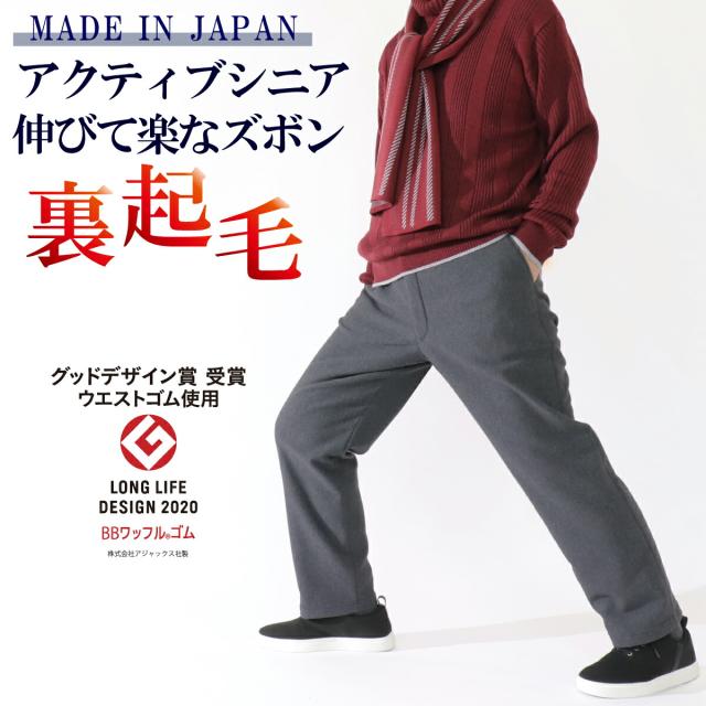 高齢者 服 シニアファッション シニア 起毛 メンズ 【品番5111】暖か 股下65cm 父 おじいちゃん 紳士 ギフト プレゼント 70代 80代 シルバー スラックス ウエストゴム ズボン 日本製 冬 人気 M L LL 男性 快適 裏起毛 ストレッチ パンツ 紳士