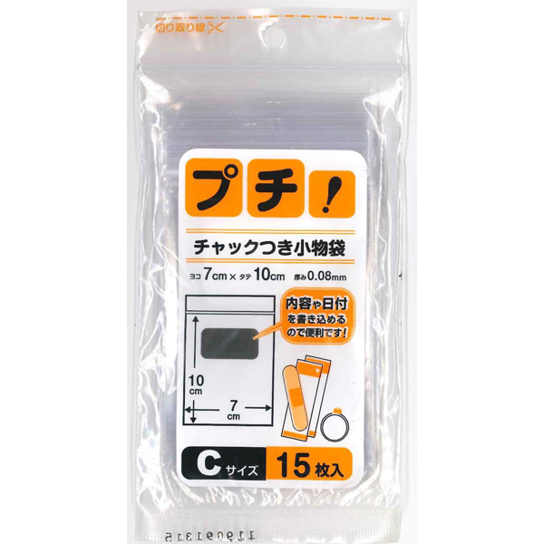 【ゆうパケット配送対象】[日本技研工業]プチ チャック付き 小物袋 透明 PS-C 15枚入(袋 ジップ チャック付き ポリ袋 小分け袋)(ポスト投